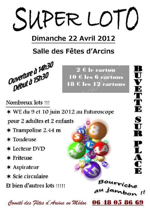 Super loto organisé par le comité des fêtes d'Arcins en Médoc.