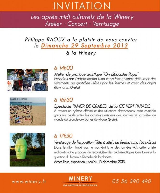 - De 14h à 16h : Atelier de pratique artistique "On délocalise Ropa"