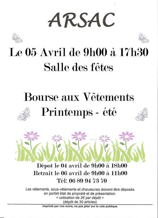 - Vente : samedi 5 avril de 9h00 à 17h30