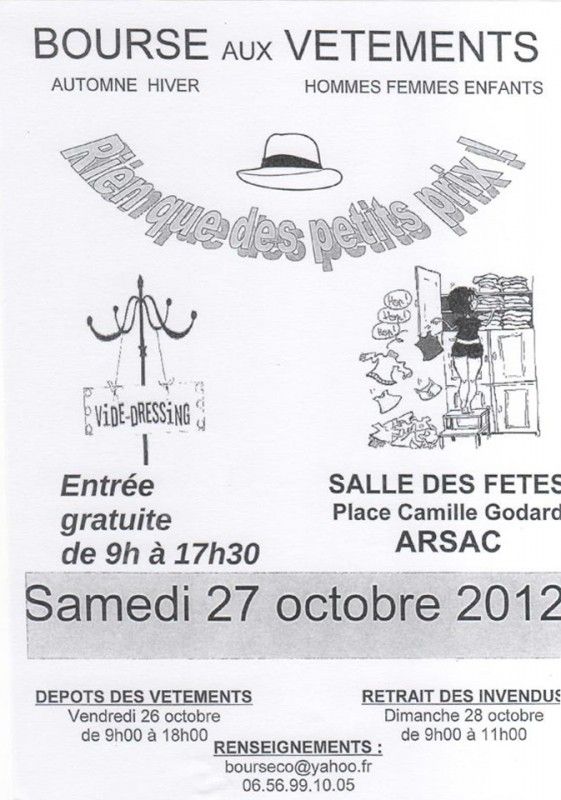 - Vente des articles : Samedi 27/10/2012 de 9h00 à 17h30.