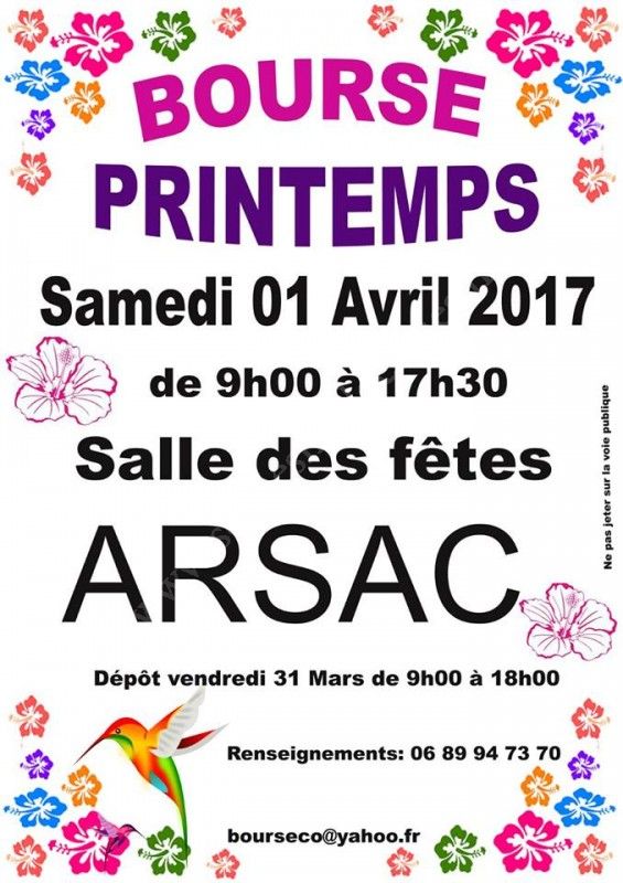 - Dépôt Vendredi 31 Mars 2017 de 9h00 à 18h00.