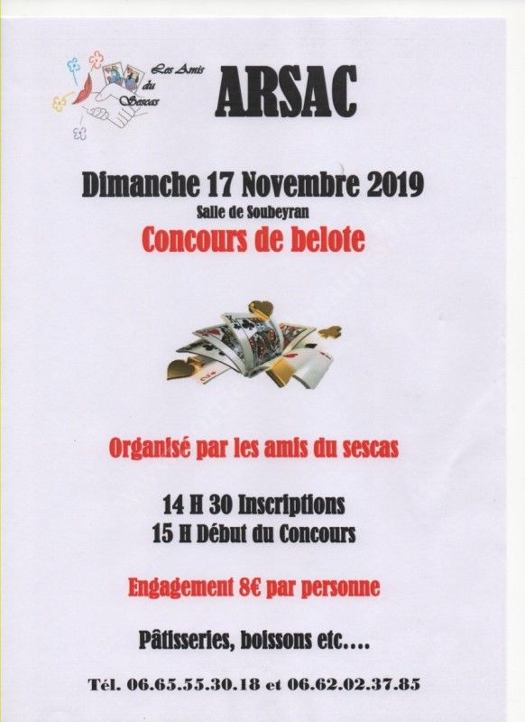 Concours de belote organisé : par les "AMIS DE SESCAS"