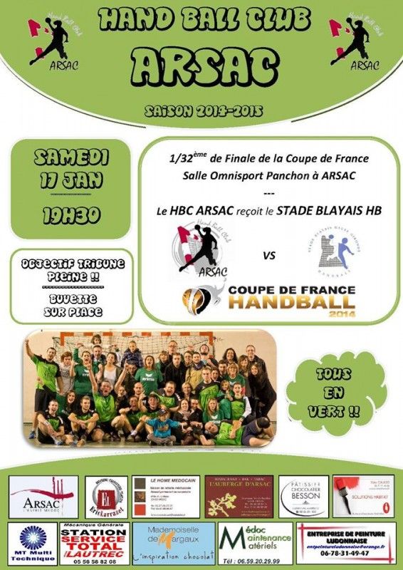 Le HBC ARSAC reçoit le STADE BLAYAIS HB
