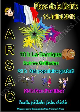 Fête du 14 Juillet 2015 organisée par la municipalité et le Club des Archers d’Arsac.