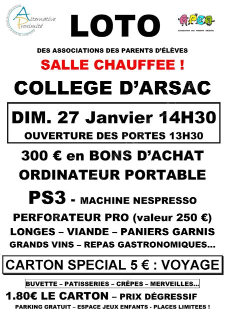 Venez participer au loto de l’association des Parents d'élèves du Collège "Alternative & Proximité".