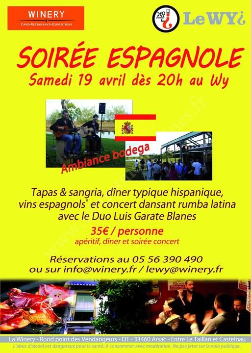 Venez à la Winery le samedi 19 avril dès 20h00, pour une soirée exceptionnelle aux couleurs, saveurs et sonorités espagnoles au restaurant Le WY !
