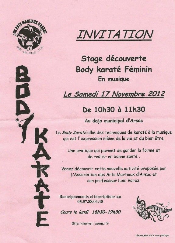 L'US Arts Martiaux d'Arsac vous propose un stage découverte de body karaté féminin en musique !