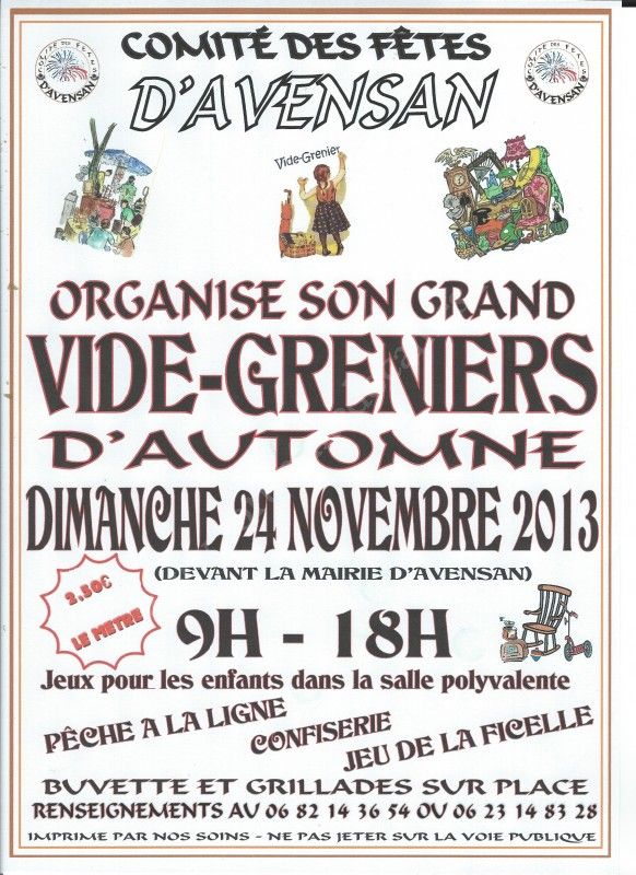 Le comité des fêtes d'Avensan organise un vide-greniers le dimanche 24 novembre 2013 de 9h à 18h