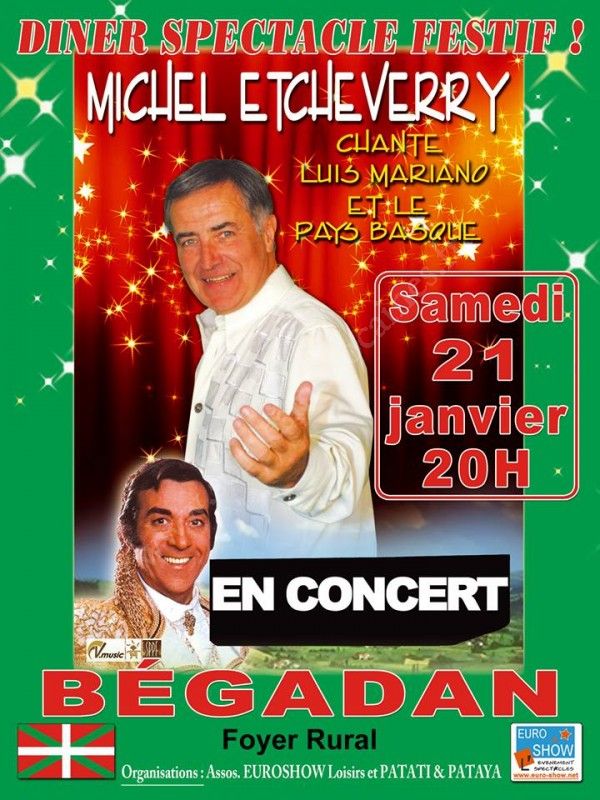 DINER SPECTACLE FESTIF avec Michel ETCHEVERRY "La voix d'or du Pays Basque" qui chante Luis Mariano et le Pays Basque.