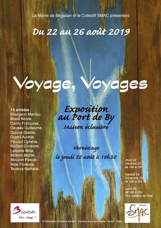 La Mairie de Bégadan et le Collectif SMAC présentent, du 22 au 26 août 2019, l'exposition d'art "Voyage, voyages".