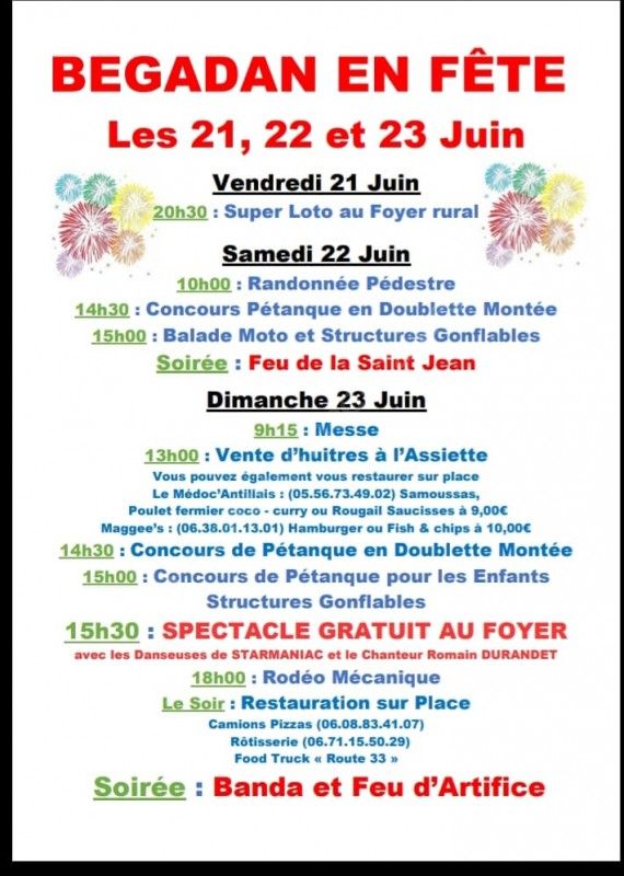 - 20:30 : Loto au Foyer Rural de Bégadan