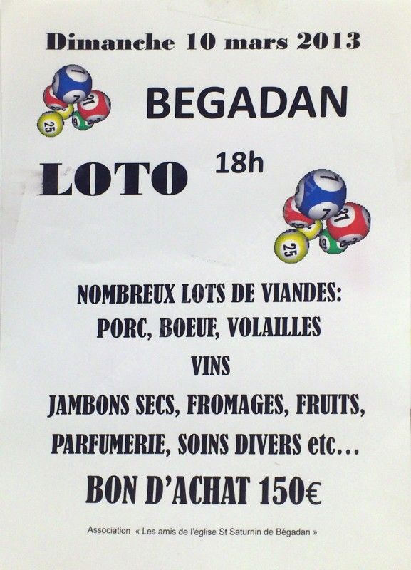 Organisé par l'Association "Les Amis de l'Eglise St Saturnin de Bégadan".