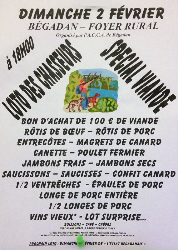 Loto des Chasseurs, spécial viande, organisé par l'ACCA de Bégadan.