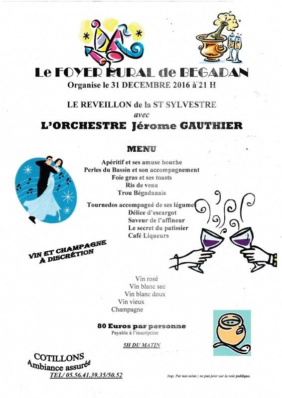 Réveillon de la Saint-Sylvestre 2016 organisé par le Foyer Rural de Bégadan.