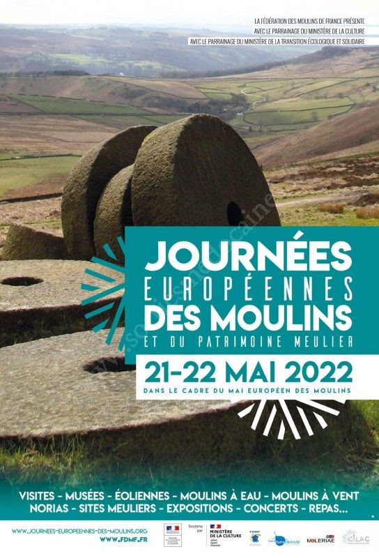 La Fédération des Moulins de France, en partenariat avec le CILAC, l’Association Moleriae et France Hydro Electricité, sous le parrainage des ministères de la Culture et de l’Environnement, organise les Journées Européennes des Moulins et du Patrimoine Meulier, les 21 et 22 mai 2022.