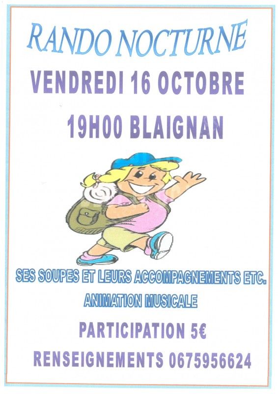 Départ à 19h00 de la salle des fêtes de Blaignan.
