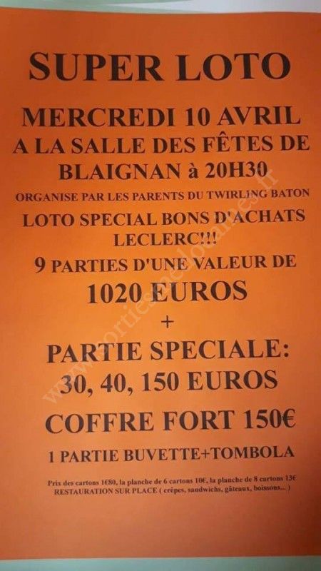 Loto le mercredi 10 avril 2019 à Blaignan.