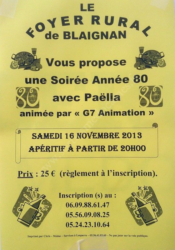 Organisée par le Foyer Rural de Blaignan et animée par "G7 Animation" !