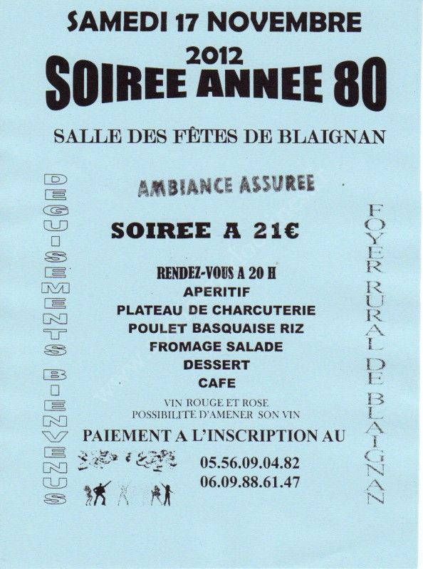 Le Foyer Rural de Blaignan organise le Samedi 17 Novembre une soirée Années 80.