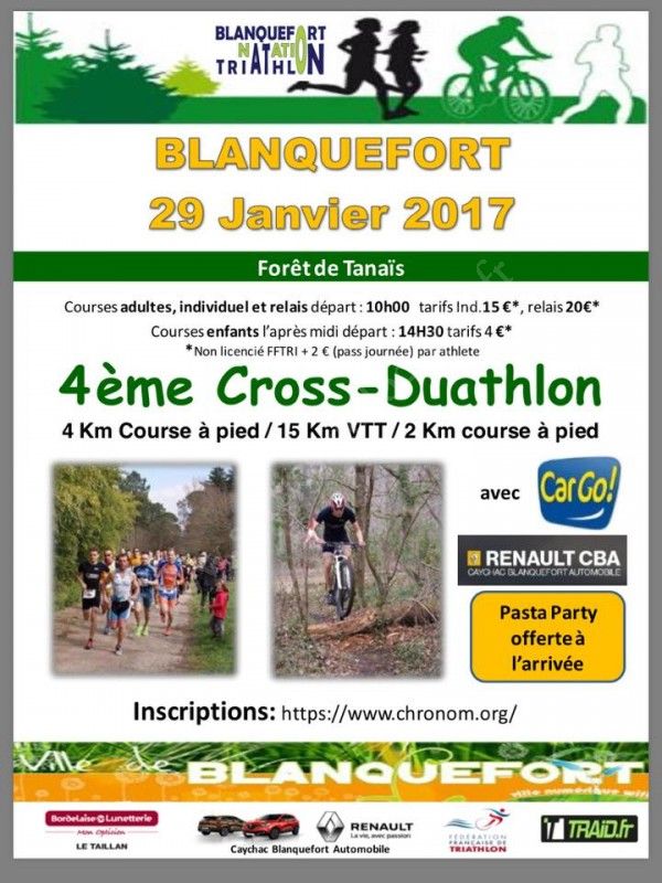 L’ESB Natation Triathlon organise son 4e Cross-Duathlon, qui rassemble environ 300 joueurs au cœur de la forêt de Tanaïs pour une épreuve sportive constituée de deux sports, le cyclisme (VTT) et la course à pied.