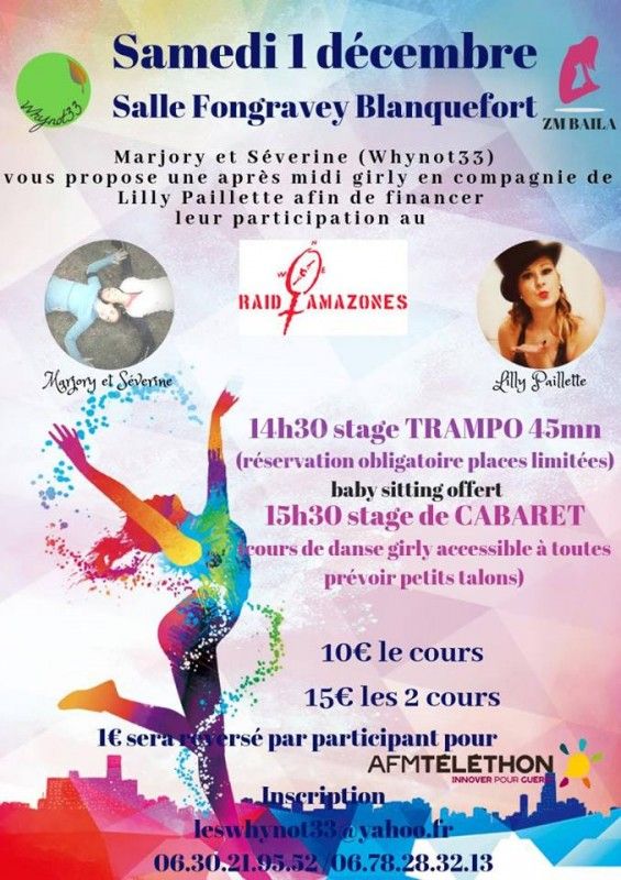 Premier stage de l’année, venez passer un bon moment et soutenir les Why not 33 Marjory et Séverine dans leur aventure du Raid Amazone, une partie des fonds récoltés seront reversés au Téléthon (1€ par participant), le reste permettra de financer leur inscription à cette belle aventure.