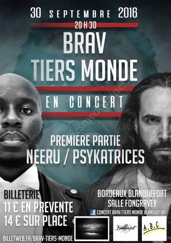 Pour des raisons de santé, Neeru et Psykatrices ne participeront pas à la 1ère partie du concert de Brav et Tiers monde.
