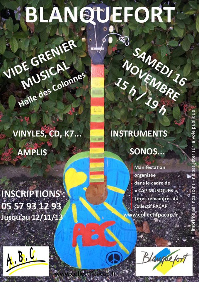 Vide grenier musical : Venez vendre vos instruments de musique, matériel son (ampli, chaines. câbles, ... ) ou supports musicaux (CD. livres. partitions).