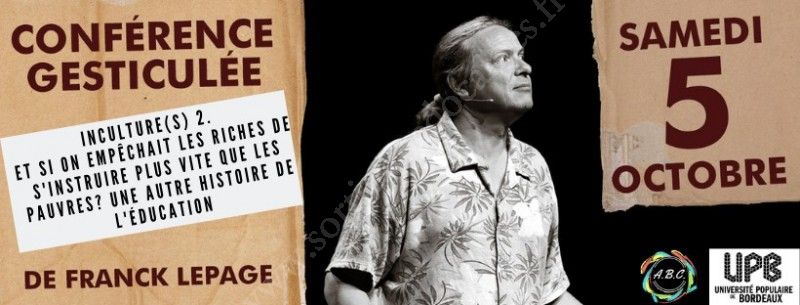 Conférence Gesticulée : Inculture(s) 2. Et si on empêchait les riches de s’instruire plus vite que les pauvres? Une autre histoire de l’éducation » de et par Franck Lepage
