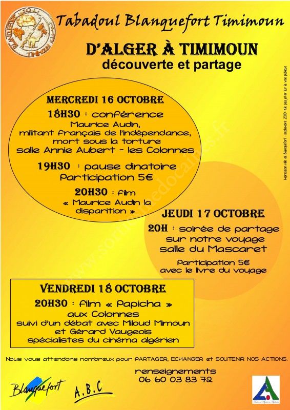 L’association « Tabadoul Blanquefort-Timimoun vous propose trois soirées :