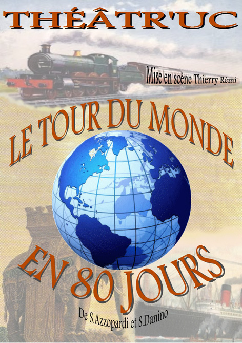 "En 1872, Philéas Fogg, un riche gentleman londonien, parie deux cent mille livres qu’il fera le tour du monde en 80 jours et hop c’est parti… avec son dévoué valet Passepartout… puis une princesse en détresse qui côtoie un chinois fumeur d’opium, jack le plus grand « looser » de l’ouest et l’inspecteur de police le plus nul de toutes les séries allemandes... Comment faire tenir quatre continents, trois océans, un paquebot, un train et un éléphant sur une scène d’un théâtre ?"
