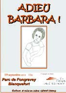 - 11h00 : Adieu Barbara - Ecrit et mis en scène par : Gérard Champ - Troupe : L’escalier de Talence (33) - Centre de loisirs (CLSH)
