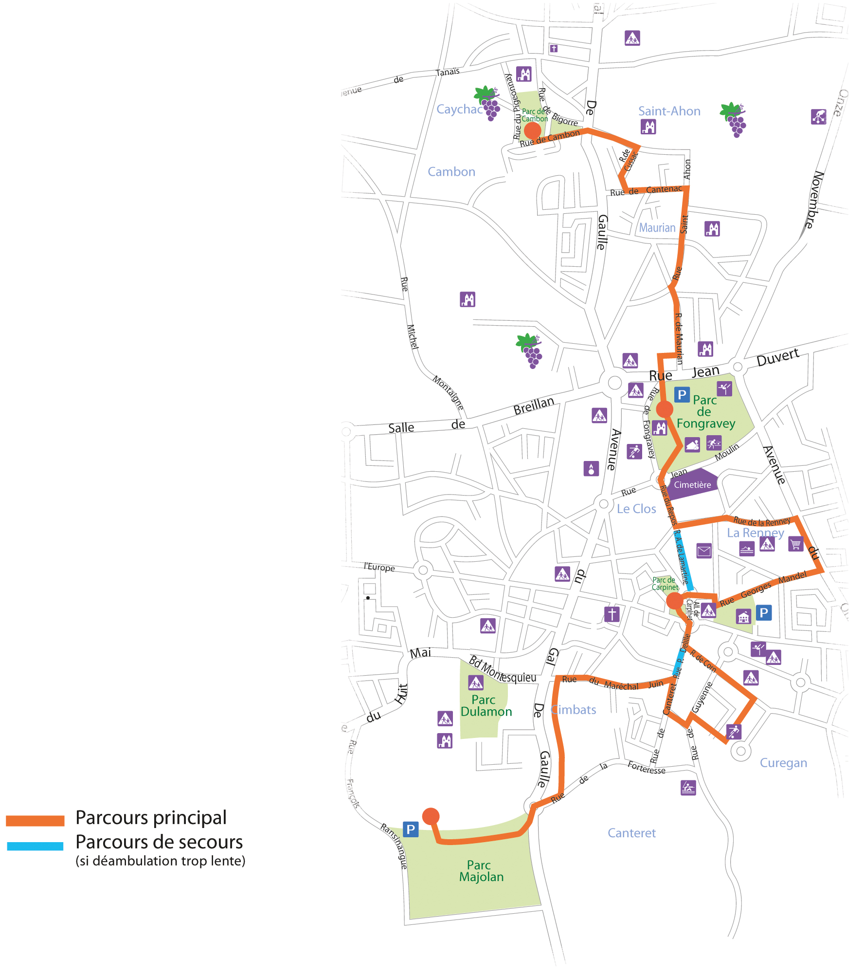 - 9h00 - 12h00 : 300 moutons en ville (Bergerie de Sénéjac, Le Pian Médoc). Grande transhumance à travers la ville, animée par des échassiers-musiciens du groupe Lou de Bazats. Rejoignez cette joyeuse troupe, même en cours de parcours : pour savoir où nous retrouver, aidez-vous du plan dessous.