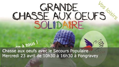 Le secours Populaire organise une chasse aux oeufs le mercredi 23 avril de 10h30 à 16h30 dans le parc de Fongravey.