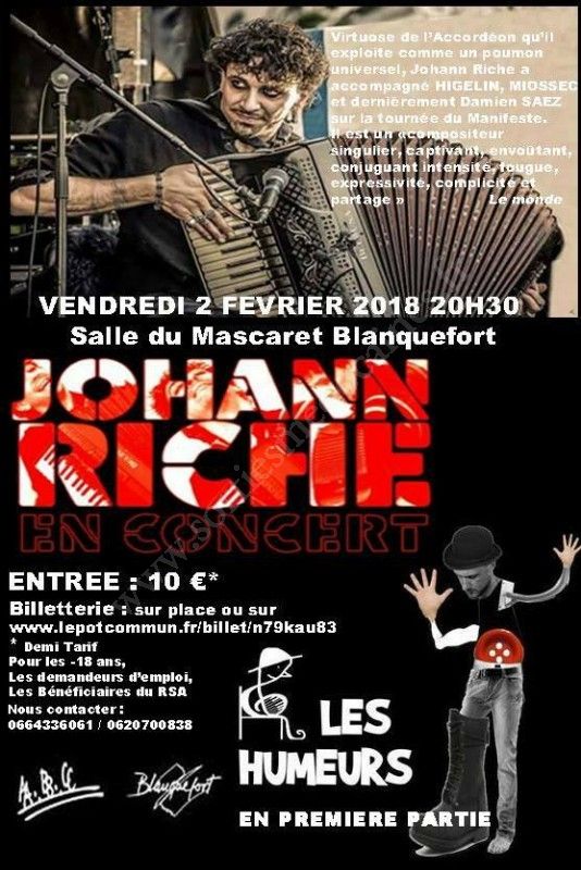 - 10€ / 5€ pour les -18ans, demandeurs d'emploi, ...