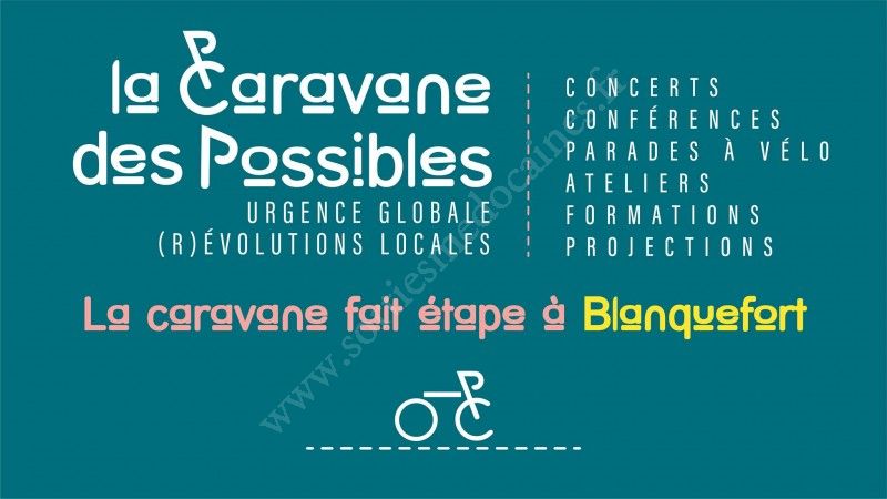 Du 13 au 29 septembre, une caravane d'artistes et de militant.e.s engagé.e.s dans la transition vont sillonner les routes de Gironde à vélo et à cheval pour mettre en lumière les (R)ÉVOLUTIONS LOCALES FACE À L'URGENCE GLOBALE : villages des Possibles, parade"bas carbone", concerts, conférences, débats, formations, actions non-violentes...