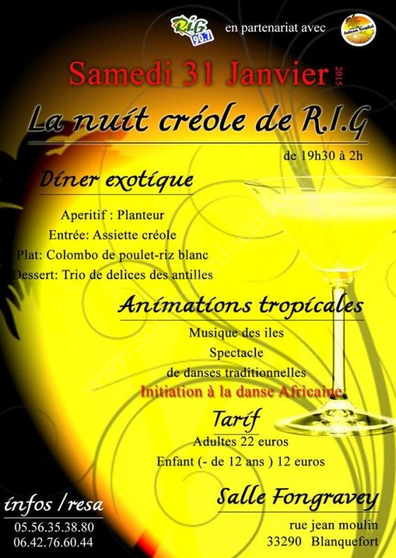 R.I.G en partenariat avec Ambyans Twopikal organise la nuit créole à la fin du mois de janvier !