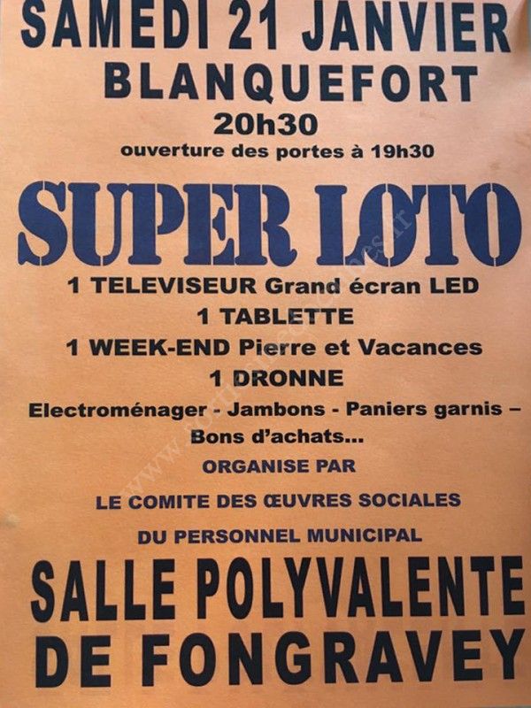 Super loto organisé par Le Comité des Oeuvres Sociales du Personnel Municipal.