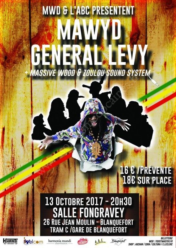 Pour l'occasion, l'espace Fongravey a le plaisir de recevoir l'excellent General Levy, le groupe Mawyd ainsi que les jeunes producteurs de Massive Wood et le Zoulou Sound System!