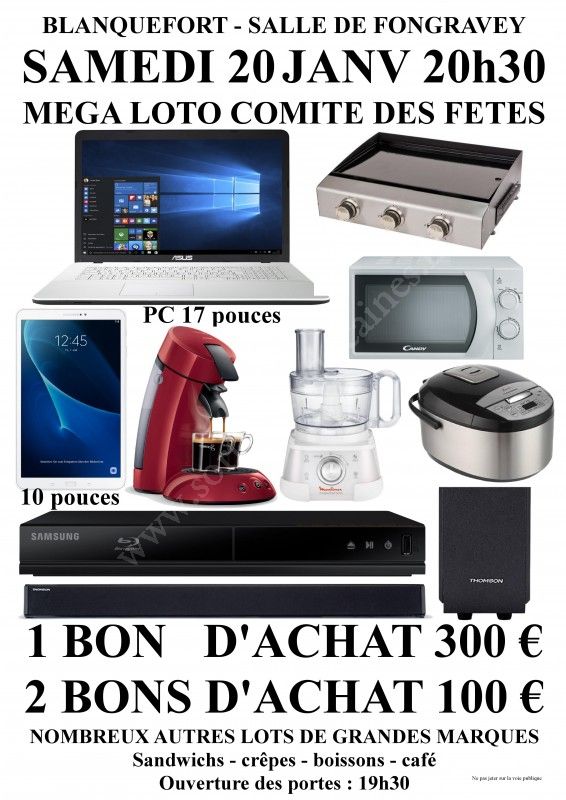 Le Comité des fêtes et de Bienfaisance de Blanquefort organise son MEGA LOTO le 20 janvier 2018.