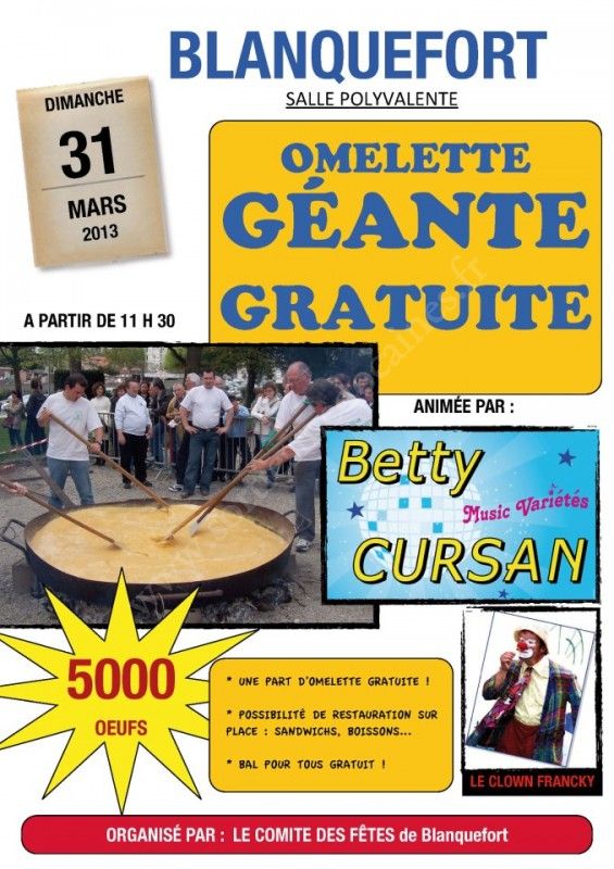 Le Comité des Fêtes de Blanquefort organise une Omelette GEANTE GRATUITE !