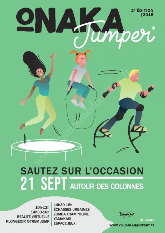 Onaka Jumper, c’est des simulations de réalité virtuelle, une structure gonflable (x-trem Jump), des ateliers et initiations, des démonstrations, du parcours urbain (Yamakasi), des échasses urbaines, de la zumba trampoline, et un espace de jeux qui vous réservera d’autres surprises…