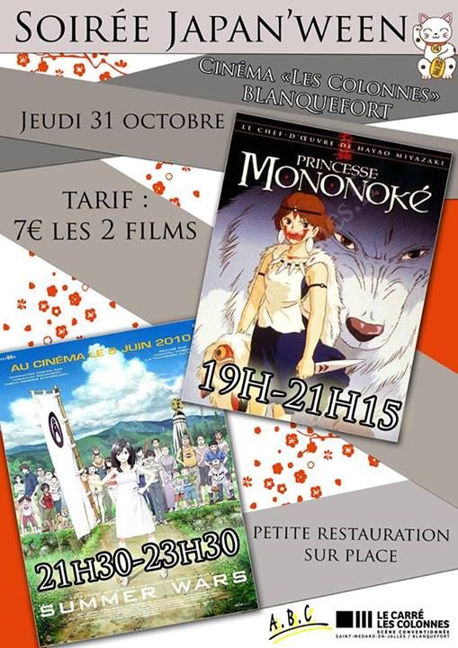 Dans le cadre de cette collaboration, Le Cinéma Les Colonnes propose une soirée "Japanween" autour de 2 films d'animation japonais:
