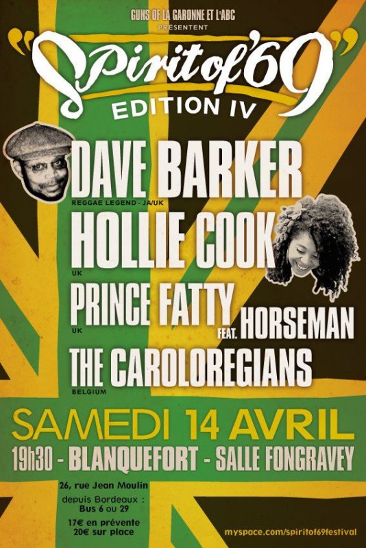 Originaires de Belgique, The Caroloregians jouent une musique inspirée par le early reggae jamaïcain et le funk des années soixante. Depuis 2006, le groupe a multiplié les concerts et a accompagné plusieurs grands noms de la musique jamaïcaine (Ken Boothe, Owen Gray,…). A Blanquefort, ils nous feront découvrir leur quatrième album (Fat is Back) avant de rejoindre Dave Barker sur scène.