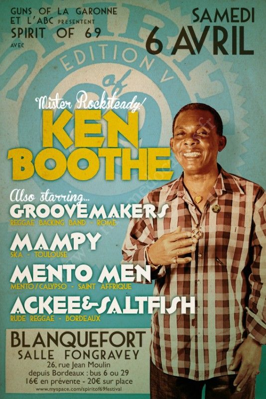 En ce 6 avril 2013, venez fêter avec nous le cinquième anniversaire du festival en recevant comme tête d’affiche LE Mr Rocksteady : Ken BOOTHE. Ne loupez surtout pas cet événement aux couleurs jamaïcaines !