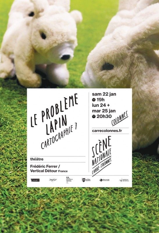 Il est mignon, sa patte porte bonheur mais il est interdit au théâtre. C’est… ? Le lapin bien sûr ! Son côté rustique et sa reproduction débridée en ont fait une espèce invasive. Sur les Iles Kerguelen qu’il a ravagées, on tenta de le décimer grâce au virus de la myxomatose. Toute ressemblance avec l’espèce humaine, l’état de la planète terre et la pandémie mondiale récente serait purement fortuite… Avec Frédéric Ferrer et ses Cartographies, nous avons déjà exploré les liens entre la morue et le capitalisme, ou parlé réchauffement climatique en cherchant les canards perdus par la Nasa... Ce nouvel opus vient compléter le cycle de vraies-fausses conférences théâtrales : légères et savantes, loufoques et brillantes.