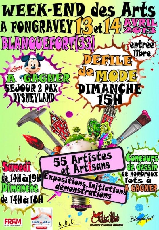 Les artistes du collectif les arts s'en mêlent vous invitent à venir les visiter les 13 et 14 avril à Fongravey. Ils ont invité d'autres artistes amis. Un séjour pour deux personnes à Disney à gagner !