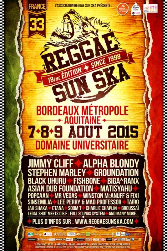 Pour fêter sa majorité et donc ses 18 années d’existence, le Reggae Sun Ska se déroulera durant 3 jours sur le Domaine Universitaire de Bordeaux Métropole les 7, 8 et 9 Août 2015.