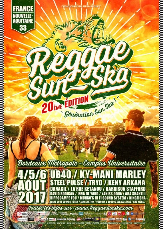 Depuis 20 ans le festival met en avant la scène reggae, au sens large, et vous la fera partager, une fois de plus, avec des artistes de talents. Le Reggae Sun Ska c’est aussi la découverte et le partage autour d’animations, de conférences, de moments de détente…20 ans, une belle aventure pour le festival et son public, ne manquez pas le rendez-vous, la « Génération sun ska » est en route !