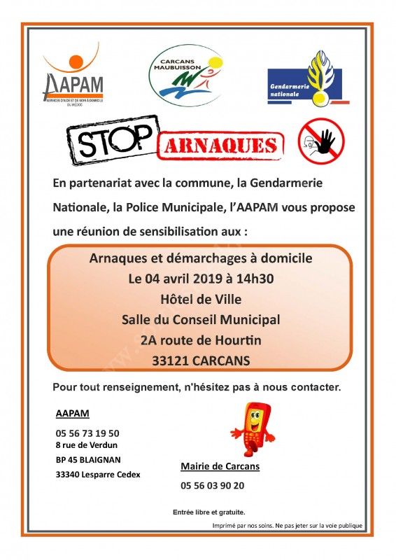 Réunion de sensibilisation proposée en partenariat par la commune, la Gendarmerie Nationale, la Police Municipale et l'AAPAM.