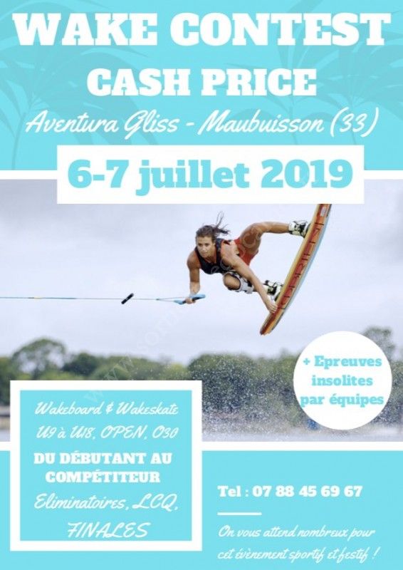 Compétition de wakeboard et wakeskate à CASH PRICE organisée à Maubuisson (Gironde 33).